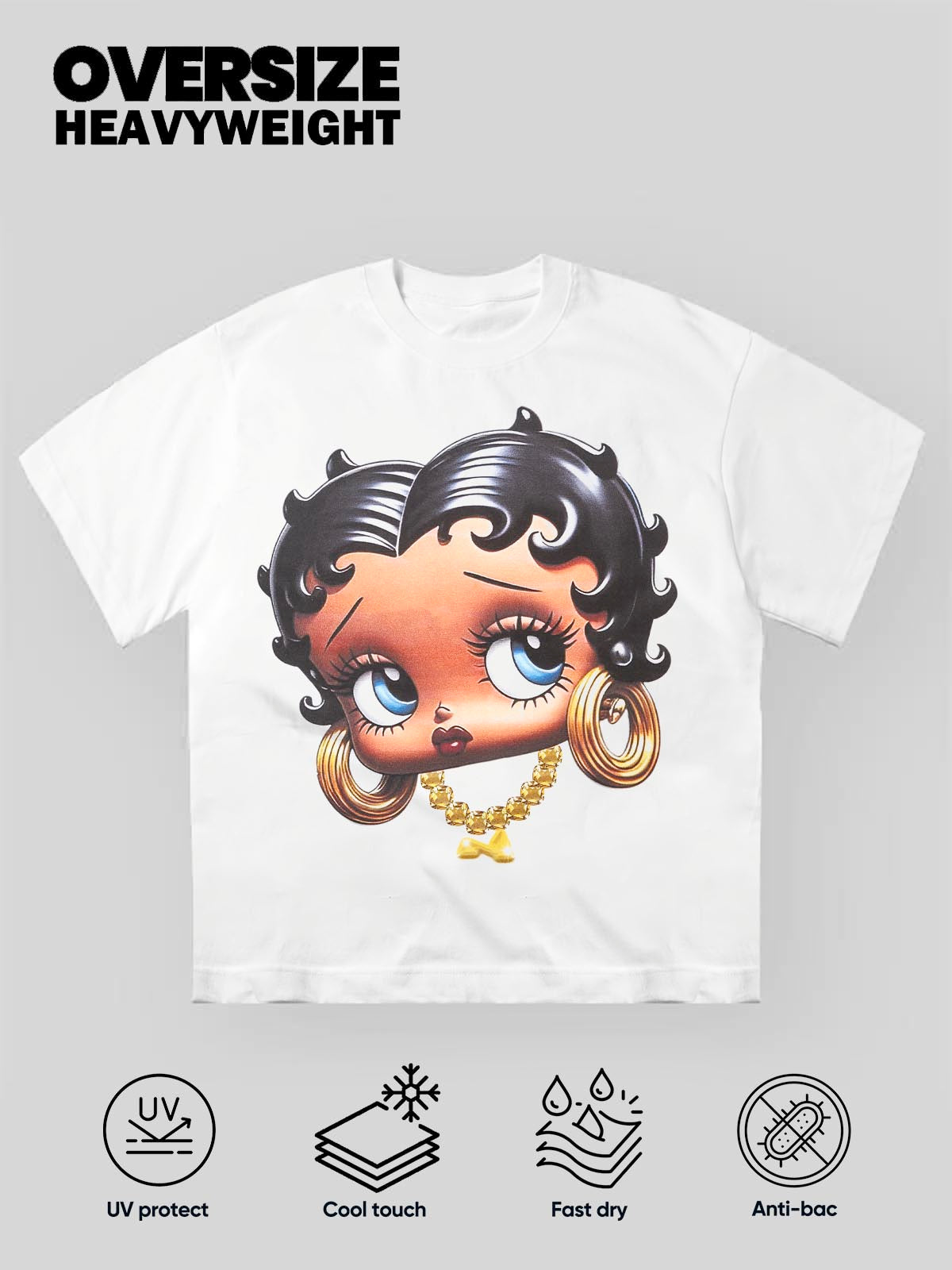 Retro glamour, Black Cartoon girl Glamorous Print T-Shirt. Classic pattern expresses fashion attitude, showcasing unique charm.